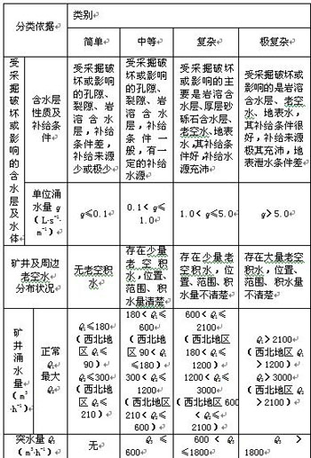 4.按分類依據(jù)就高不就低的原則,確定礦井水文地質(zhì)類型。
