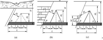 L=L1+L2+L3=Ha(sinδ-cosδcotθ)+(Hacosδ+M)(cotθ+cotδ)≥20m(3-4)