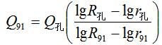 式中Q91,R91,r91--孔徑為91mm的鉆孔的涌水量、影響半徑和鉆孔半徑;