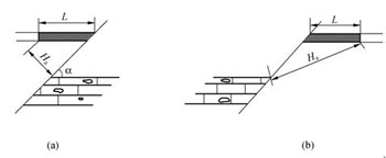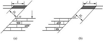 當(dāng)考慮底部壓力時(shí),應(yīng)當(dāng)使煤層底板到斷層面之間的最小距離(垂距),大于安全煤柱的高度(Ha)的計(jì)算值,并不得小于20m。其計(jì)算公式為