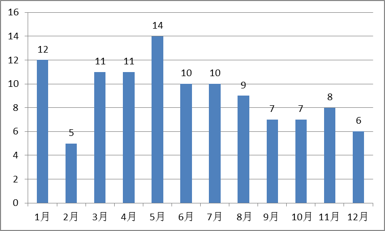 圖7??2021年1—12月特種設(shè)備事故起數(shù)分布圖