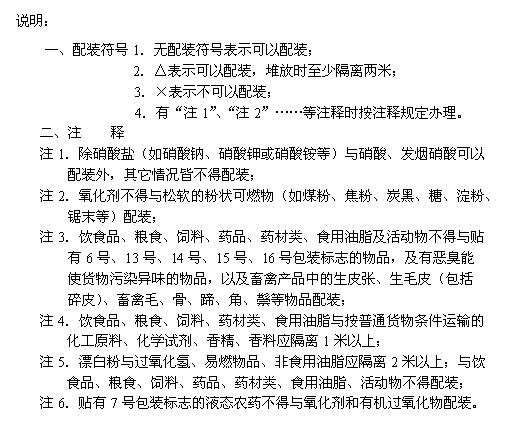 5.發(fā)孔劑H不得與酸性腐蝕品,或貼有13號(hào)、14號(hào)包裝標(biāo)志的易燃酯類危險(xiǎn)貨物配裝。