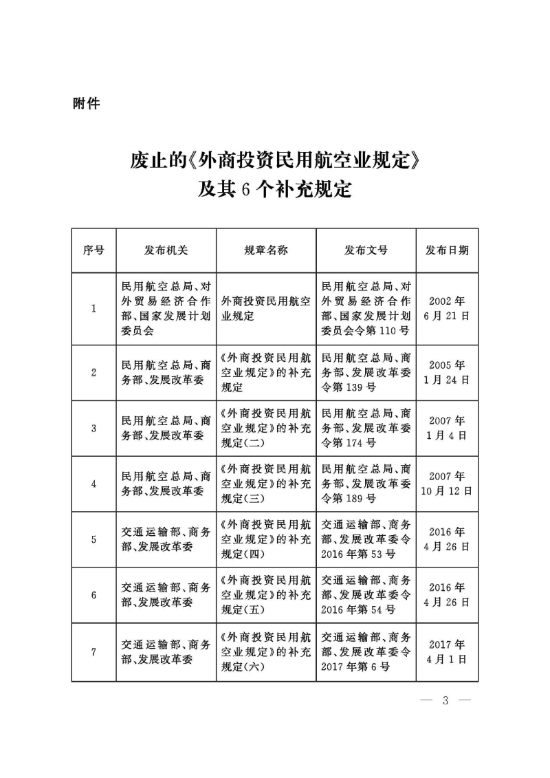 附件:廢止的《外商投資民用航空業(yè)規(guī)定》及其6個(gè)補(bǔ)充規(guī)定