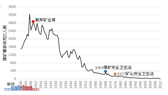圖1:美國1900-2012年度煤礦事故死亡人數(shù)