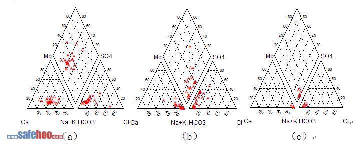 圖1 興隆莊礦上組煤主要充水含水層水質(zhì)Piper三線圖