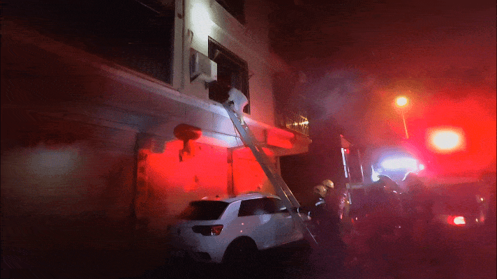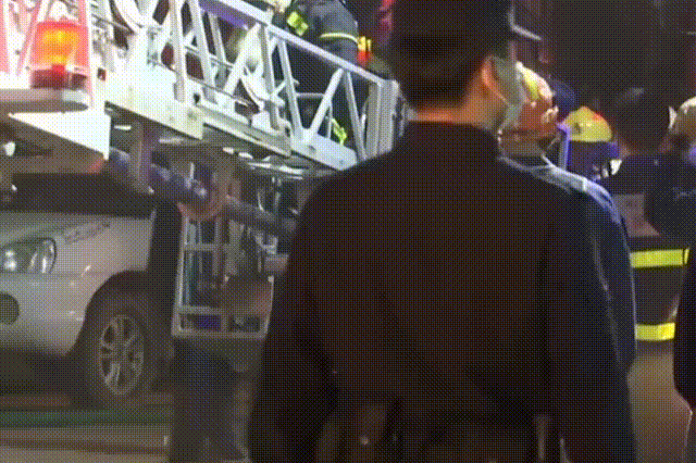 消防員立即架設(shè)金屬拉梯