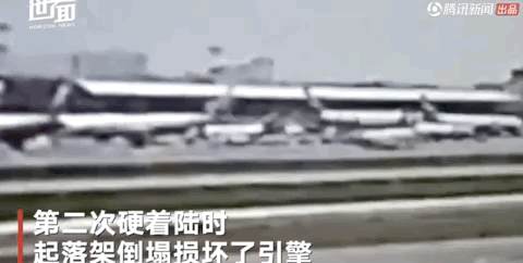 據(jù)稱由于天氣原因,飛機(jī)在首次著陸失敗,第二次降落時才成功降落。然而落地時飛機(jī)起落架折斷,發(fā)動機(jī)瞬間起火。