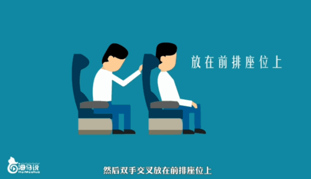 2.頭靠手上,在飛機(jī)著陸前保持這個姿勢否則可能會被撞暈。