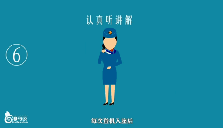 6.每次登機(jī)入座后要認(rèn)真聽空乘講解,閱讀安全手冊,檢查安全帶是否正常,了解救生衣、氧氣面罩的使用,確定逃生出口的方位。