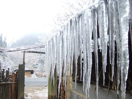 凍雨是過冷雨滴或毛毛雨落到溫度在冰點(diǎn)以下的地面上,水滴在地面和物體上迅速凍結(jié)而成的透明或半透明冰層,這種冰層可形成“千崖冰玉里,萬峰水晶中’的壯美景象。如遇毛毛雨時(shí),則出現(xiàn)粒凇,粒凇表面粗糙,粒狀結(jié)構(gòu)清晰可辨;如遇較大雨滴或降雨強(qiáng)度較大時(shí),往往形成明冰凇,明冰凇表面光滑,透明密實(shí),常在電線、樹枝或艦船上一邊流一邊凍,形成長長的冰掛。