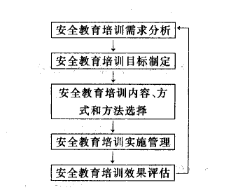 實(shí)際上,安全教育和安全培訓(xùn)是有區(qū)別的,培訓(xùn)是按具體的工作要求對(duì)員工的行為方式進(jìn)行塑造,使員工可能行為方式類別減少的過(guò)程,而教育是對(duì)員工可能行為方式的拓展,使他能夠適應(yīng)多種可能出現(xiàn)的情況,并在其中移動(dòng)通信也自己最適合的一種卻承擔(dān)工作。就目前來(lái)說(shuō),這兩項(xiàng)工作在企業(yè)安全教育培訓(xùn)中并沒(méi)有明確的區(qū)分。根據(jù)企業(yè)員工培訓(xùn)的一般原理和方法,安全教育培訓(xùn)的程序如圖1所示。