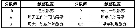 暴露危險環(huán)境的頻繁程度(E)???????????????? 表2