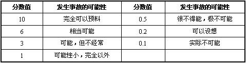 發(fā)生事故的可能性(L)???????????????????? 表1