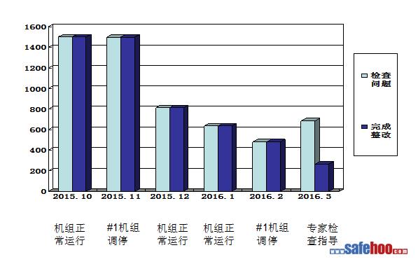 2. 專家指導(dǎo)的整改和公司自查、省公司復(fù)查整改階段,從2016年4月開始對專家組提出的問題進(jìn)行檢查整改,對同類問題舉一反三,自查自糾,通過三個月的檢查治理工作,利用機(jī)組調(diào)停和C級檢修,把機(jī)組運(yùn)行無法整改的項(xiàng)目全部完成整改,特別是利用5.1機(jī)組雙停機(jī)會對公用系統(tǒng)進(jìn)行全面治理,對現(xiàn)場設(shè)施不完善、設(shè)備缺陷及隱患、設(shè)備滲漏等問題進(jìn)行整改和完善,現(xiàn)場文明生產(chǎn)面貌有較大改觀。