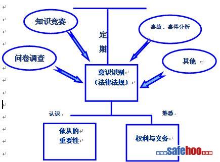 d)法律法規(guī)意識的識別方法:采用知識競賽、問卷調(diào)查、事故事件分析及其它方法對員工的安全生產(chǎn)法律法規(guī)意識進(jìn)行調(diào)查。