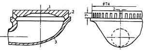 圓火孔,通常用鉆頭直接鉆出,加工方便,應(yīng)用廣泛。圖3—6—16(a)為無凸緣的圓火孔,圖3—6—16(b)為有凸緣的圓火孔。有凸緣的火孔對(duì)于二次空氣供給及火孔冷卻均比無凸緣的好。但它較難制造。圓火孔與空氣的接觸面比方火孔小,故影響二次空氣的供給。
