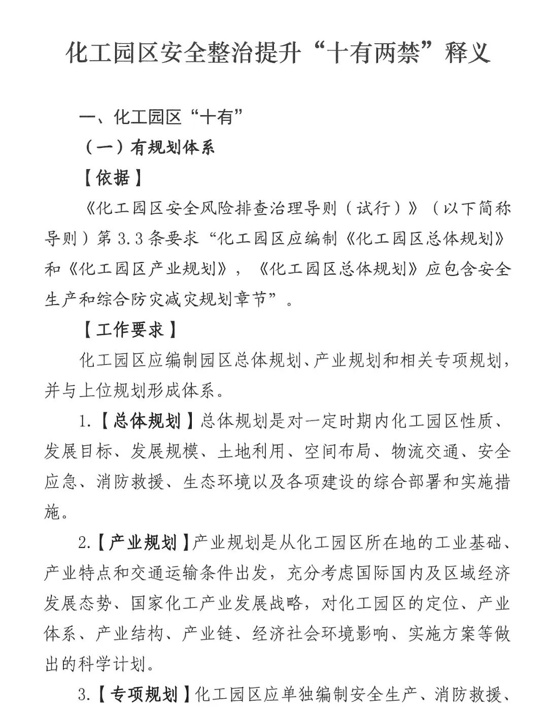 附:《化工園區(qū)安全整治提升“十有兩禁”釋義》