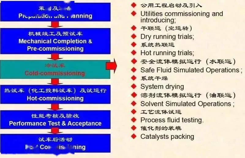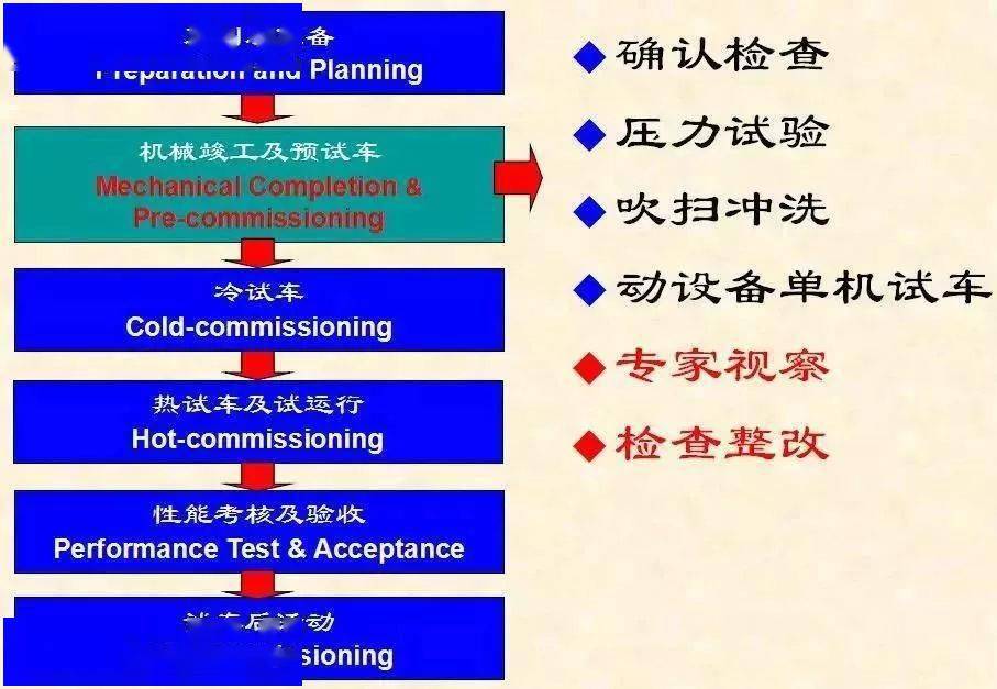 試車:顧名思義是對(duì)生產(chǎn)流程或設(shè)備(“車”僅是借用)進(jìn)行一系列試驗(yàn)的一個(gè)相當(dāng)長(zhǎng)的過(guò)程。對(duì)應(yīng)的英文“Commissioning ” 是“Commission”的動(dòng)名詞,原意是“匯聚”、“會(huì)議”、或“集結(jié)”討論決定某事。
