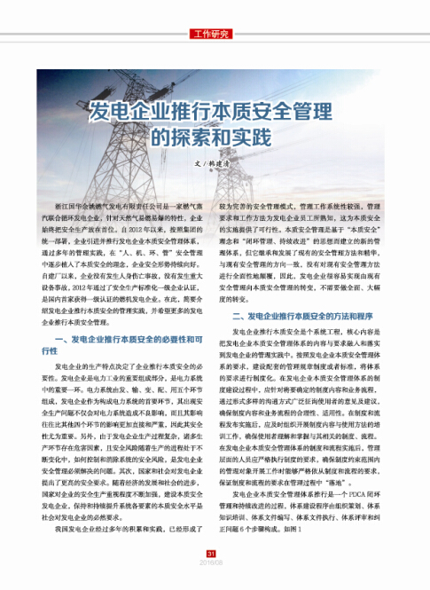 二、發(fā)電企業(yè)推行本質(zhì)安全的方法和程序