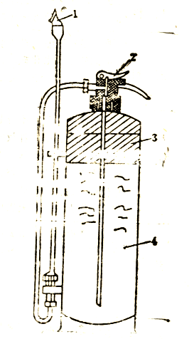 輕金屬滅火器如圖所示,它由筒身、氮氣小鋼瓶、膠管和噴栓等組成。筒身內裝有氯化鎂、氯化鈉、氯化鉀,氯化鈣等粉末,用于撲滅鎂、鋁、鈦及合金等輕金屬火災。廣泛用于加工輕金屬的廠房、工場、飛機制造廠等場所。 圖輕金屬滅火器 1— 噴頭;2—開關; 3—氮氣;4—滅火劑 輕金屬滅火器應設于取用方便的地方,且應防止高溫,使用兩年后,應進行水壓試驗。在壓力25公斤/厘米<sup>2</sup>下,保續(xù)2分鐘,無泄漏,無變形,作可繼續(xù)使用。