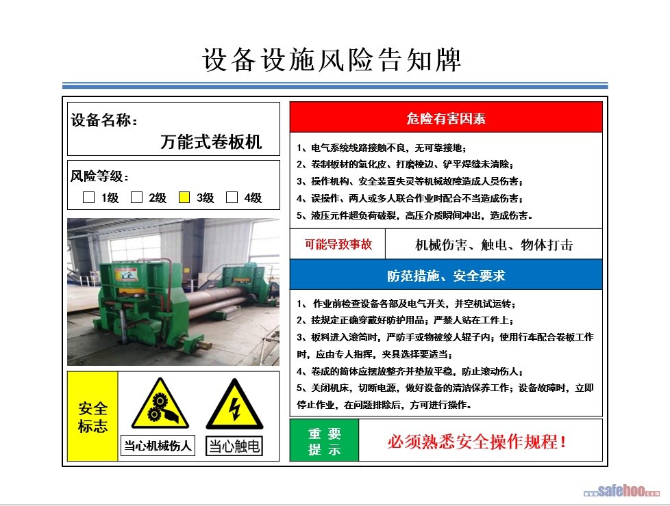 卷板機(jī)崗位風(fēng)險(xiǎn)告知卡