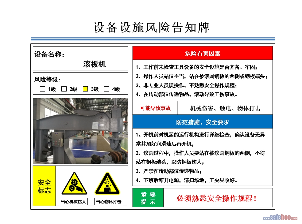 滾板機(jī)風(fēng)險(xiǎn)告知牌