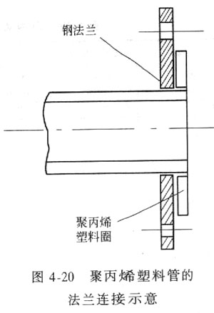 法蘭連接,在聚丙烯塑料的法蘭連接中,以鋼的活套去蘭連接最有效,如圖4-20所示。