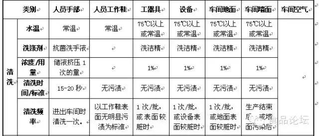 6.2 車間清洗消毒規(guī)范簡(jiǎn)表
