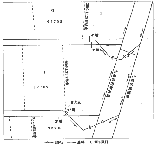 2005年4月14日凌晨3:00,峰峰集團公司薛村礦92709回采工作面運料巷密閉墻頂部發(fā)生了一起煤層自然發(fā)火事故。由于事故發(fā)生在厚煤層高瓦斯地區(qū),發(fā)現(xiàn)時已有明火。事故如何處理是要非常慎重的,把人身安全防止瓦斯爆炸做為最基本的原則。下面將如何處理這起事故、采取了什么樣的對策,做以介紹。