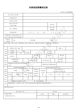 水泵試運(yùn)轉(zhuǎn)測(cè)試記錄