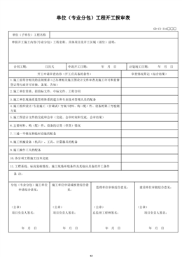 單位(專業(yè)分包)工程開工報審表