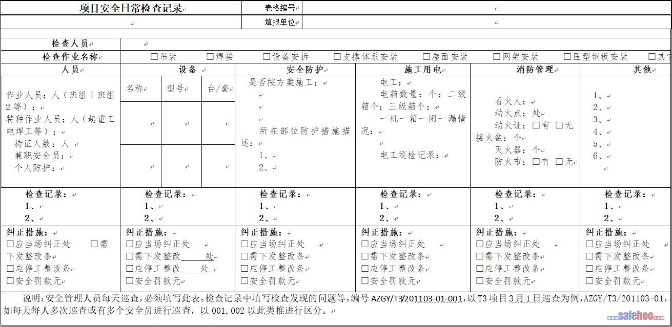 企業(yè)負(fù)責(zé)人現(xiàn)場(chǎng)帶班檢查記錄(項(xiàng)目)