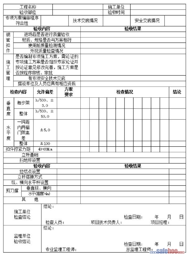 門式模板支架搭設(shè)驗(yàn)收記錄表