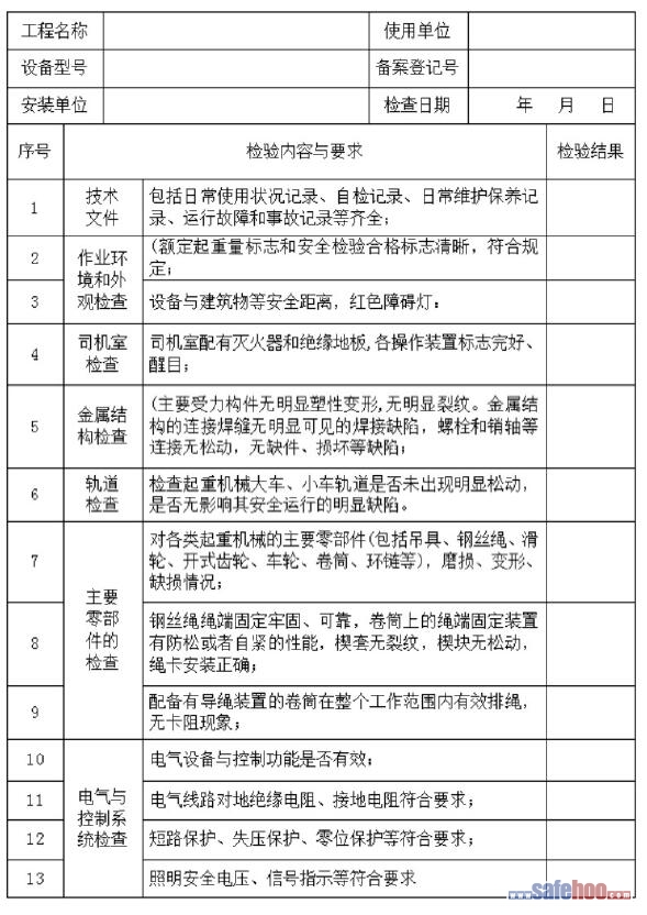 橋門(mén)式起重機(jī)安裝驗(yàn)收表