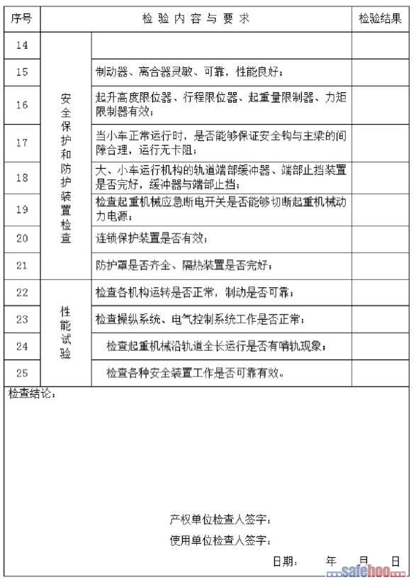 橋門(mén)式起重機(jī)每日使用前檢查表