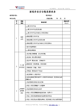 射線作業(yè)安全隱患排查表