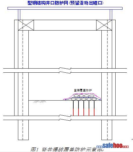 ![]() 圖1 豎井爆破覆蓋防護示意圖