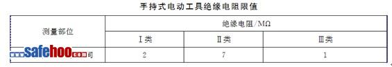(2)手持式電動工具的外殼、手柄、插頭、開關、負荷線等必須完好無損,使用前必須做絕緣檢查和空載檢查,在絕緣合格、空載運轉正常后方可使用。絕緣電阻不應小于下表規(guī)定的數(shù)值。