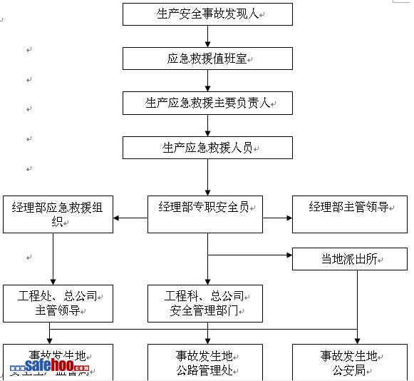 ??? 項(xiàng)目成立應(yīng)急救援領(lǐng)導(dǎo)小組,由項(xiàng)目經(jīng)理負(fù)責(zé)制。項(xiàng)目經(jīng)理任組長(zhǎng),分管安全的副經(jīng)理副組長(zhǎng),安全員和泡沫混凝土施工組長(zhǎng)和工程負(fù)責(zé)人為組員的管理組織機(jī)構(gòu)。