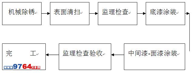 5.3表面處理完成后,在自檢查合格基礎上通知監(jiān)理進行檢查,在監(jiān)理確認合格的基礎上再進行涂裝。