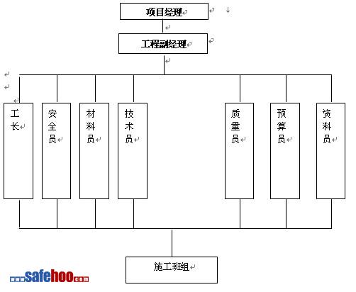 1、本工程在項(xiàng)目經(jīng)理的直接領(lǐng)導(dǎo)下,建立了相應(yīng)的組織機(jī)構(gòu),統(tǒng)一指揮施工的全過程,直至達(dá)到100%的質(zhì)量合格指標(biāo),組織機(jī)構(gòu)如下:
