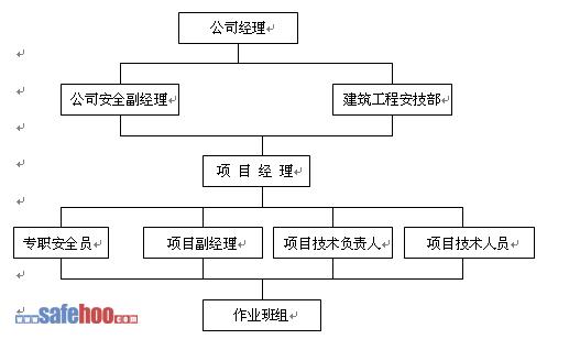 1.我公司在多年的施工過(guò)程中,建立了完整的安全保證體系,明確規(guī)定公司經(jīng)理是企業(yè)安全生產(chǎn)第一責(zé)任人,從公司到項(xiàng)目部,逐級(jí)建立了安全管理機(jī)構(gòu),并建立了各級(jí)安全管理制度。在本工程的施工過(guò)程中,將充分發(fā)揮各級(jí)職能部門(mén)的作用。