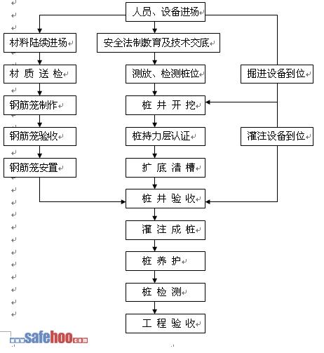 1、樁位測量:根據(jù)放線隊現(xiàn)場測放的建筑物控制樁位及護壁樁基坑邊坡支護平面圖,采用經(jīng)緯儀導向,結(jié)合鋼尺量距法測放出建筑物的軸線,并在施工區(qū)已平整場地上標記出各軸線位置,根據(jù)軸線和樁基平面圖放出各樁位中心點,再根據(jù)樁中心點測放出樁身范圍,用紅磚砌井圈,經(jīng)復核樁位無誤后再進行開挖。井圈高出地面0.2m,以防地面水流入井中。