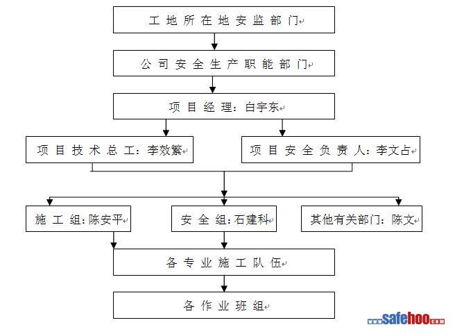 ?? ①、在公司安全監(jiān)督部門的領(lǐng)導下,項目經(jīng)理部成立安全生產(chǎn)領(lǐng)導小組,由項目經(jīng)理主持安全生產(chǎn)領(lǐng)導小組開展工作,行使職責。