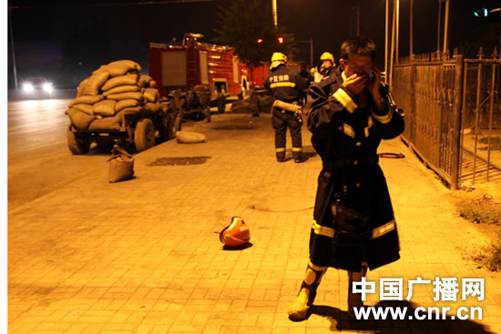 下午7點(diǎn)多鐘,記者接到指令后,迅速趕往現(xiàn)場。在距離現(xiàn)場還有二、三公里時,嗆人的氨氣撲面而來,令人窒息。警察已經(jīng)封鎖了現(xiàn)場,并在積極疏散圍觀人群。記者走到距離事故核心區(qū)幾百公尺的地方時,已經(jīng)被氨氣嗆得眼淚直流、呼吸道也有一種灼熱感。氨氣是沒有毒的,但高濃度氨氣卻有很強(qiáng)的腐蝕性。一名消防戰(zhàn)士看到脖子上挎著相機(jī)的記者后,塞給了一個口罩。但干口罩戴在臉上無濟(jì)于事。記者急忙找到一名手里拿著礦泉水的戰(zhàn)士,往口罩上潑了些水,才勉強(qiáng)繼續(xù)向事故核心區(qū)走去。