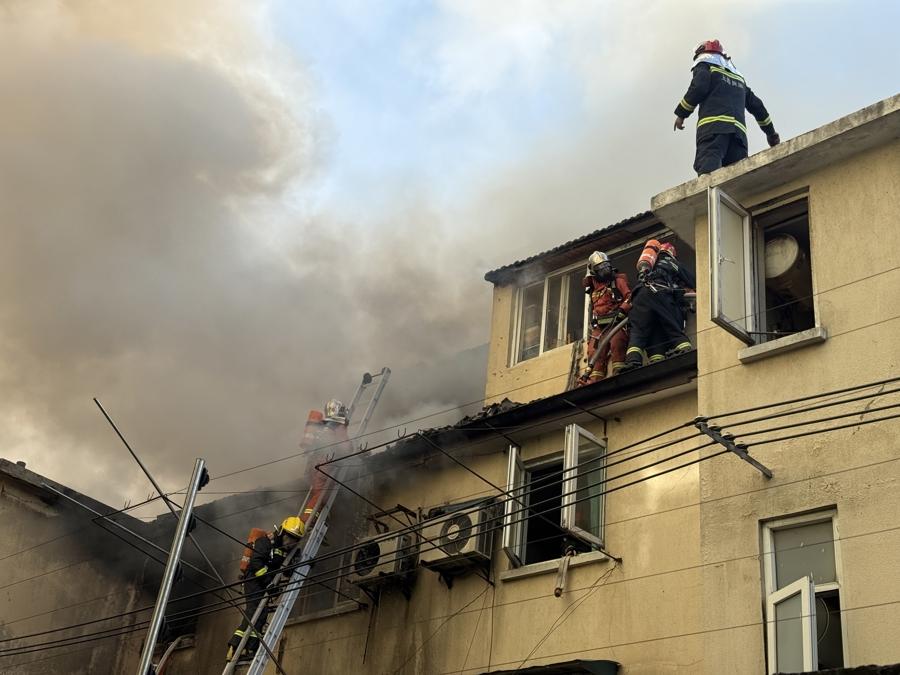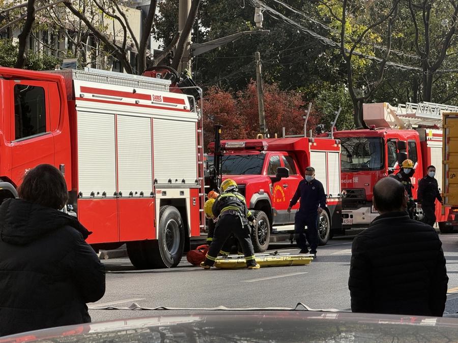 新民晚報記者在現(xiàn)場看到,有數(shù)輛消防車停在打浦路上,消防隊員正全力開展火災(zāi)撲救工作。
