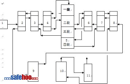 1--轉(zhuǎn)化風(fēng)機(jī),2--3Ⅲa換熱器,3Ⅲb換熱器,4--Ⅰ換熱器5--轉(zhuǎn)化器,6--Ⅱ換熱器,7--Ⅳb換熱器,8--Ⅳa換熱器,9--第一吸收塔,10—第二吸收塔,11—尾氣吸塔