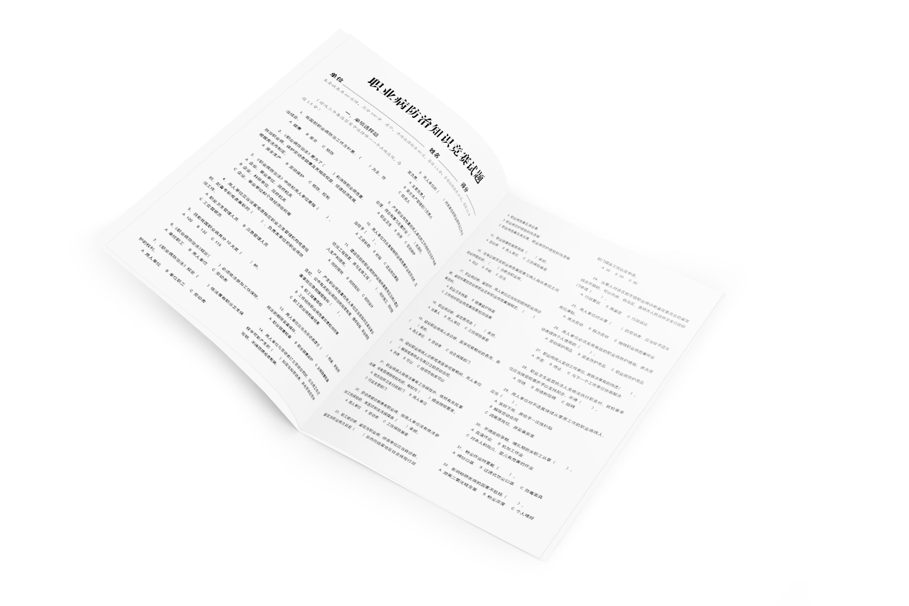 試卷含單選題和多選題,共60道題。均根據(jù)最新法律法規(guī)標(biāo)準(zhǔn)并結(jié)合工作實(shí)踐編寫,試題內(nèi)容涉及面廣,是檢驗(yàn)全員安全意識(shí)提升的好助手。