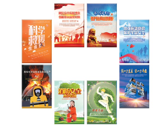 本套招貼體現(xiàn)了國(guó)家政策、以人為本、安全發(fā)展、應(yīng)急管理、安全教育等多方面內(nèi)容,緊扣2019 年全國(guó)安全生產(chǎn)月主題,畫(huà)面簡(jiǎn)潔大方,富有沖擊力,既烘托氣氛又發(fā)人深思。適于各級(jí)政府和企業(yè)安全月期間進(jìn)行宣傳展示。