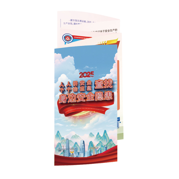 為方便安全生產(chǎn)宣傳活動(dòng),我們編制了系列安全生產(chǎn)折頁(yè),內(nèi)容生動(dòng)活潑,實(shí)用性強(qiáng),內(nèi)容涵蓋面廣,為您普及日常生產(chǎn)與生活中的安全知識(shí)。本套折頁(yè)與掛圖形式結(jié)合,使安全教育更加到位,彌補(bǔ)安全宣教掛圖和圖書(shū)教材的不足,形式新穎,喜聞樂(lè)見(jiàn),便于安全宣教活動(dòng)發(fā)放,內(nèi)容新,符合國(guó)家最新法律法規(guī)和標(biāo)準(zhǔn),具有可讀性,從業(yè)人員一看便懂一看便會(huì),宣教效果立竿見(jiàn)影。